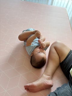 The mat's material is very quality, and the design is very aesthetic. It provides my baby a safe place to play around and at the same time not compromising my house's aesthetic. I even tried having my naps on it and it's super comfy.