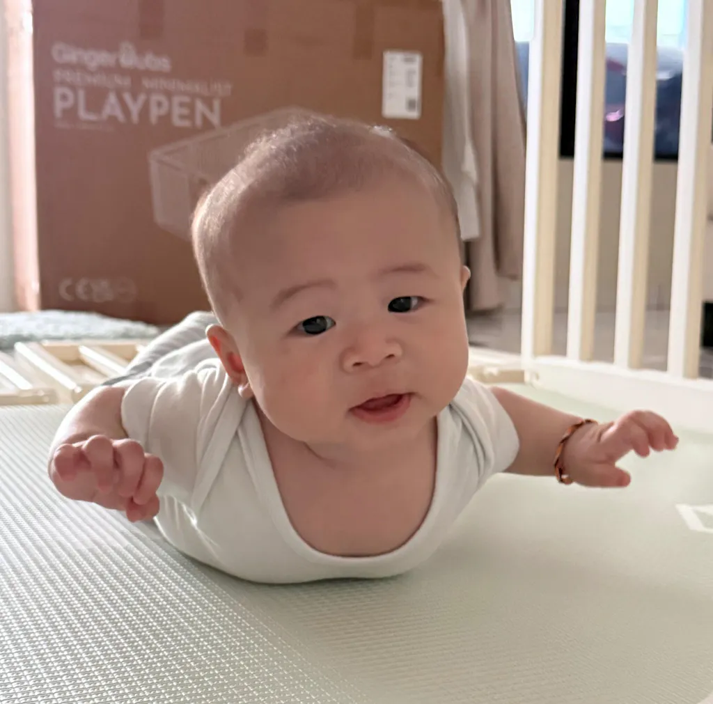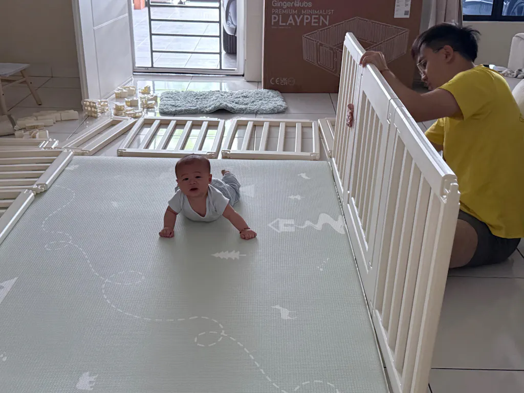 Great material. Appreciate the minimal design. Gentle bumps against the fence didn’t hurt my few months old baby who was learning how to roll and now sit up by himself. Easy to assemble and also clean. Thanks so much!