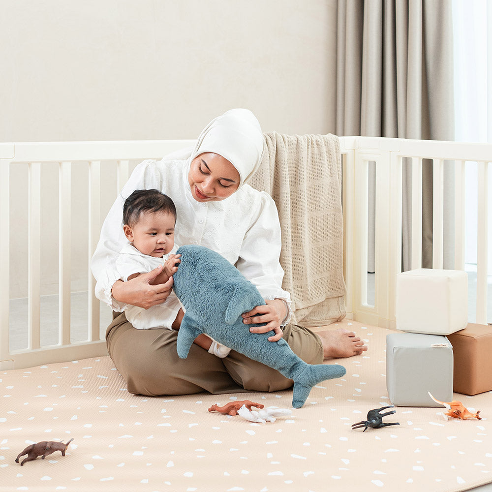 Love the newly upgraded mat. It’s thick and soft at the same time. Safe for little ones who likes to suddenly throw themselves back and hit the mat.